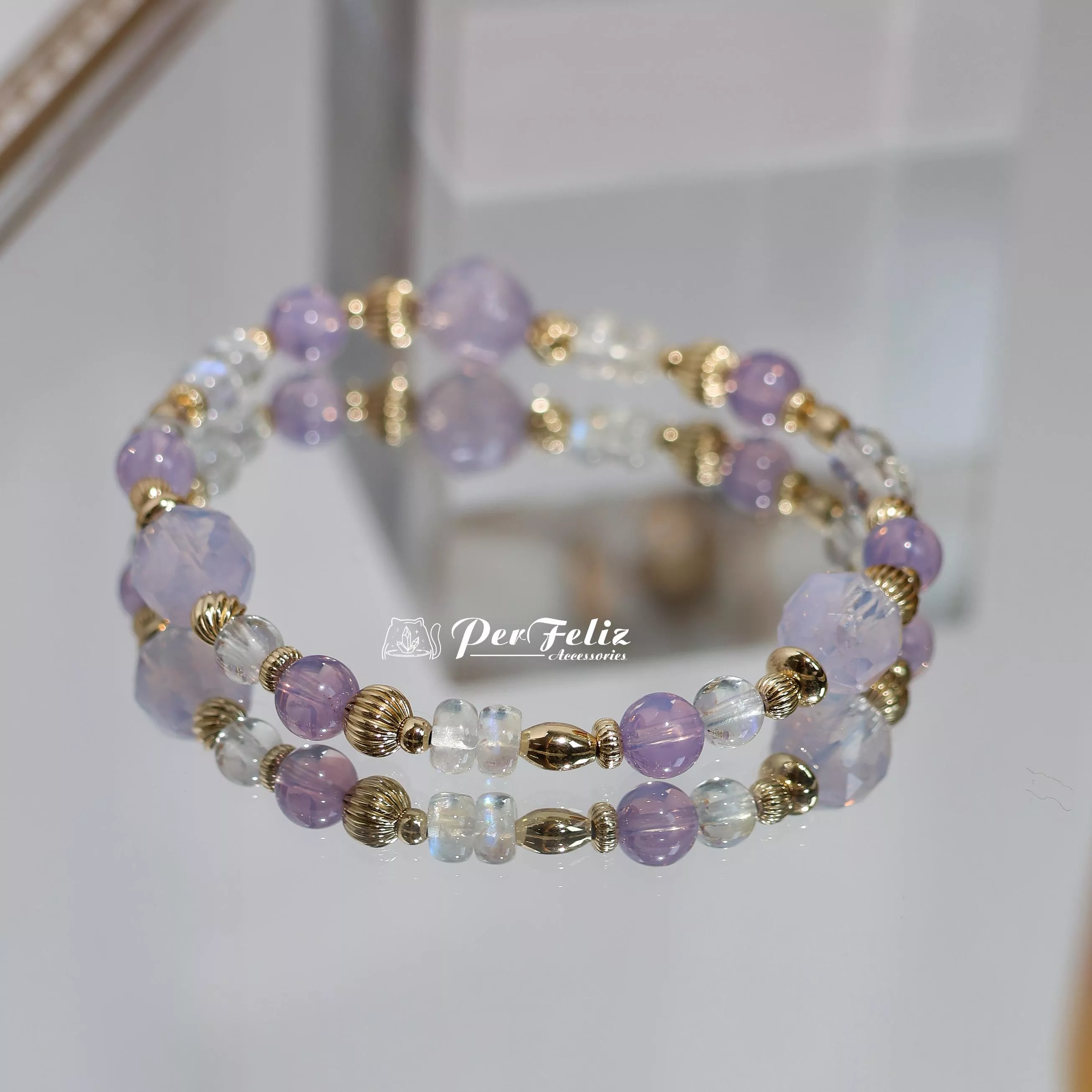 材料:紫玉晶圓珠/鑽切、藍月光