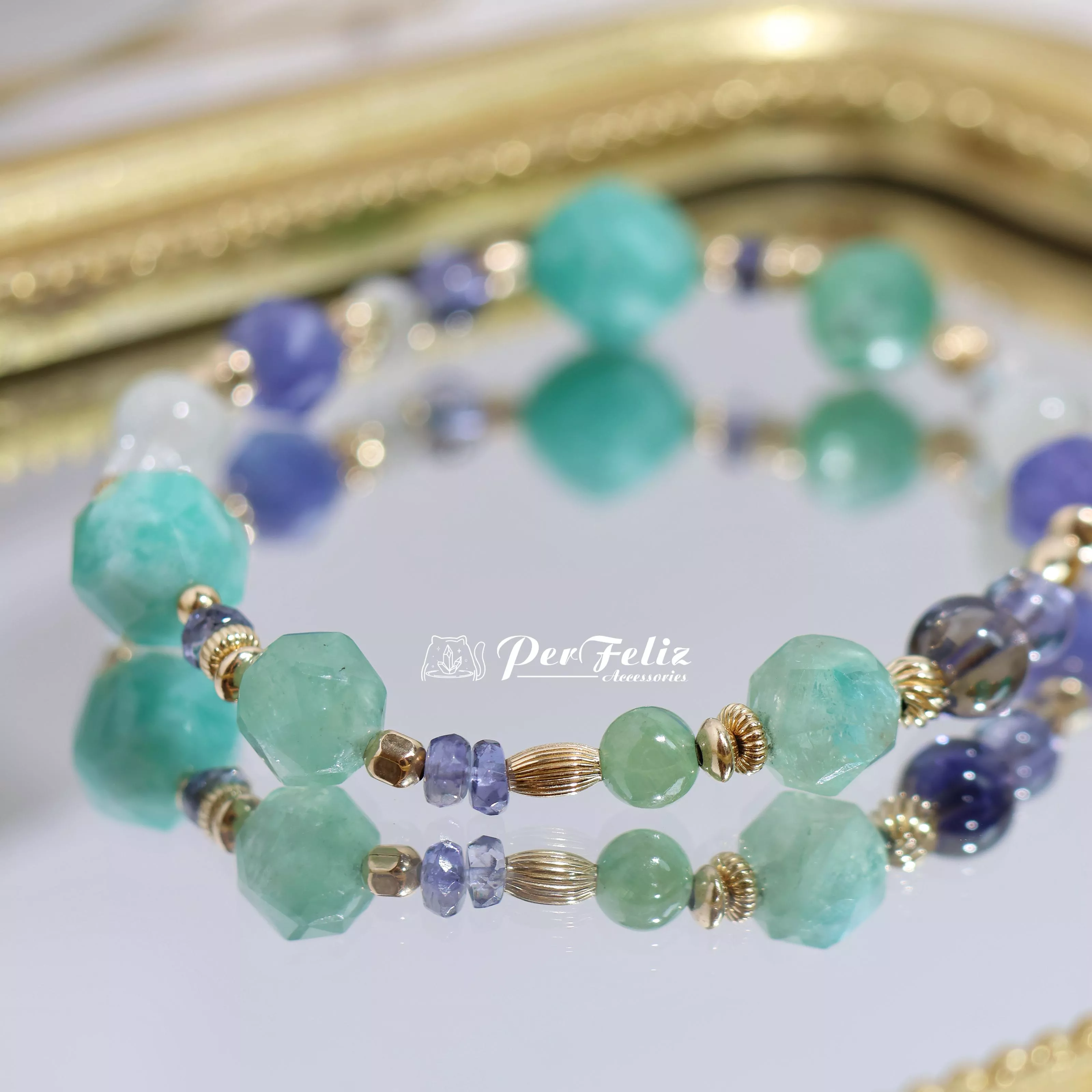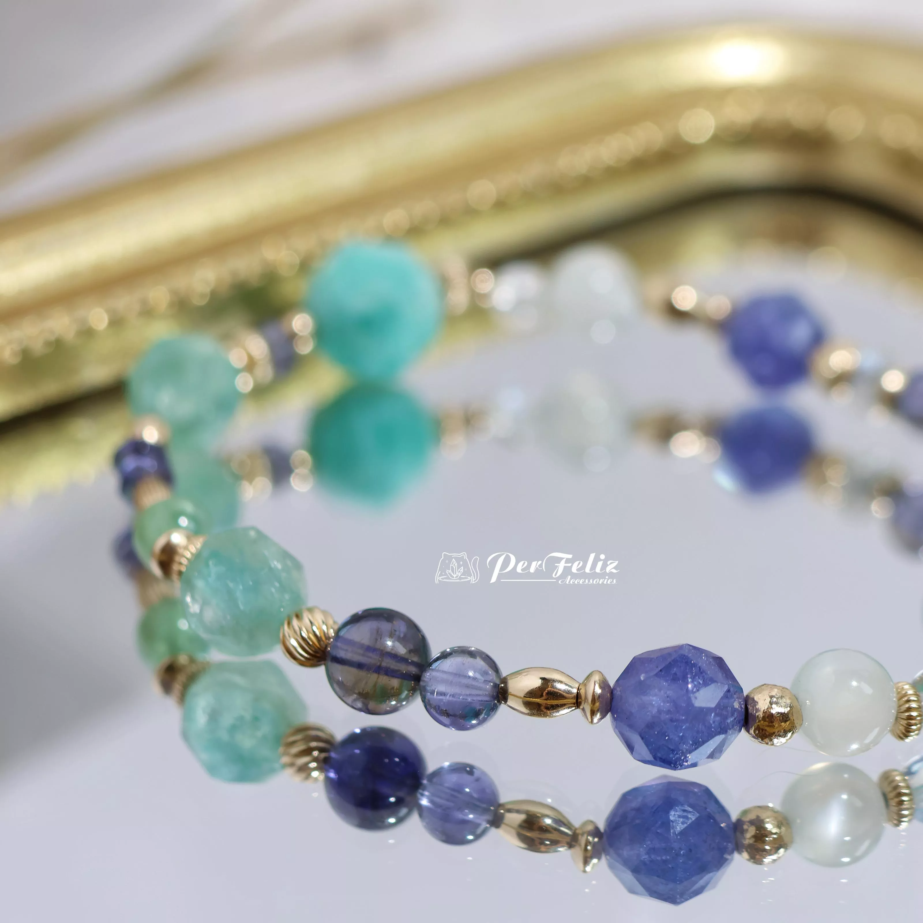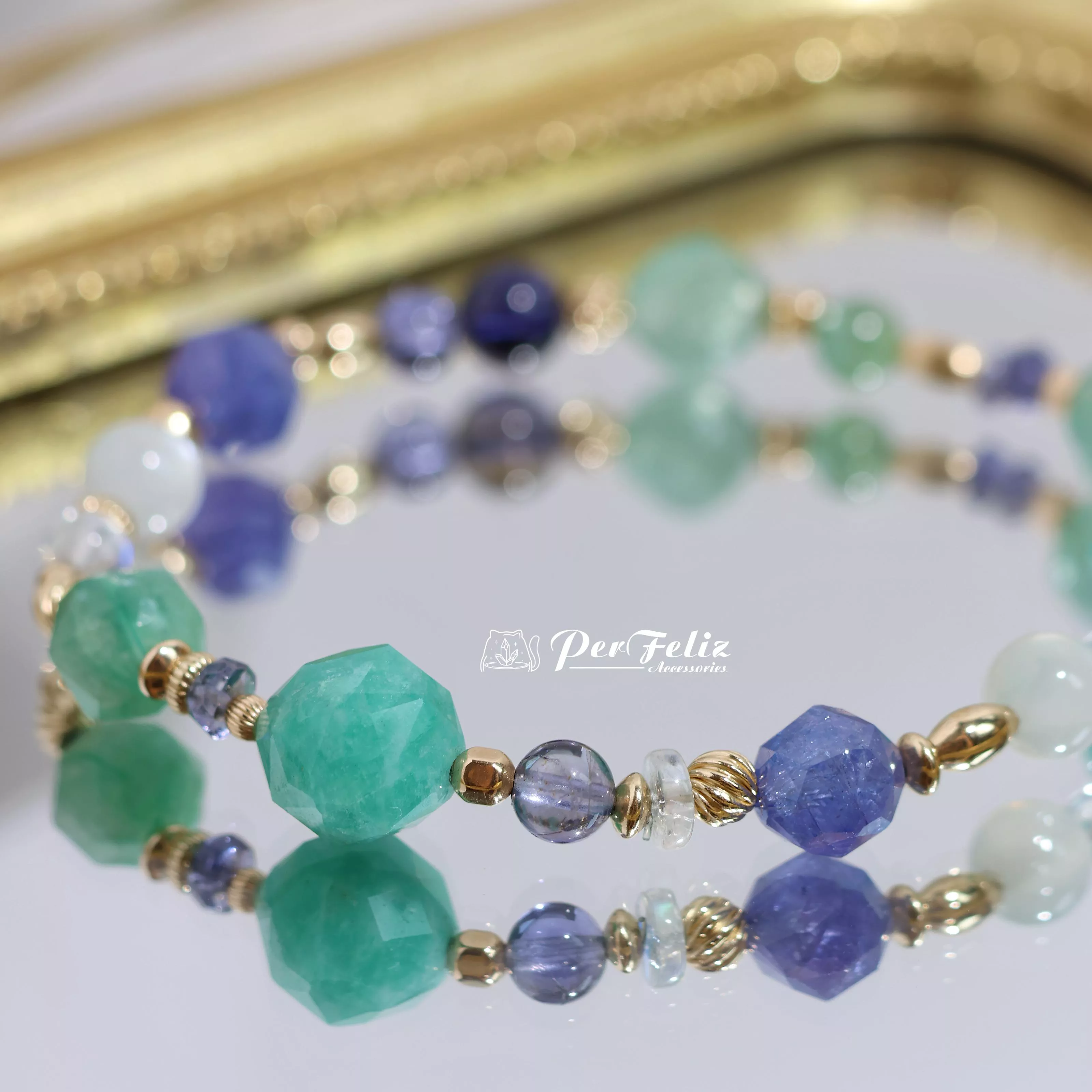 材料:坦桑鑽切、天河石鑽切、祖母晶鑽切、白月光、藍月光、堇青、藍綠晶