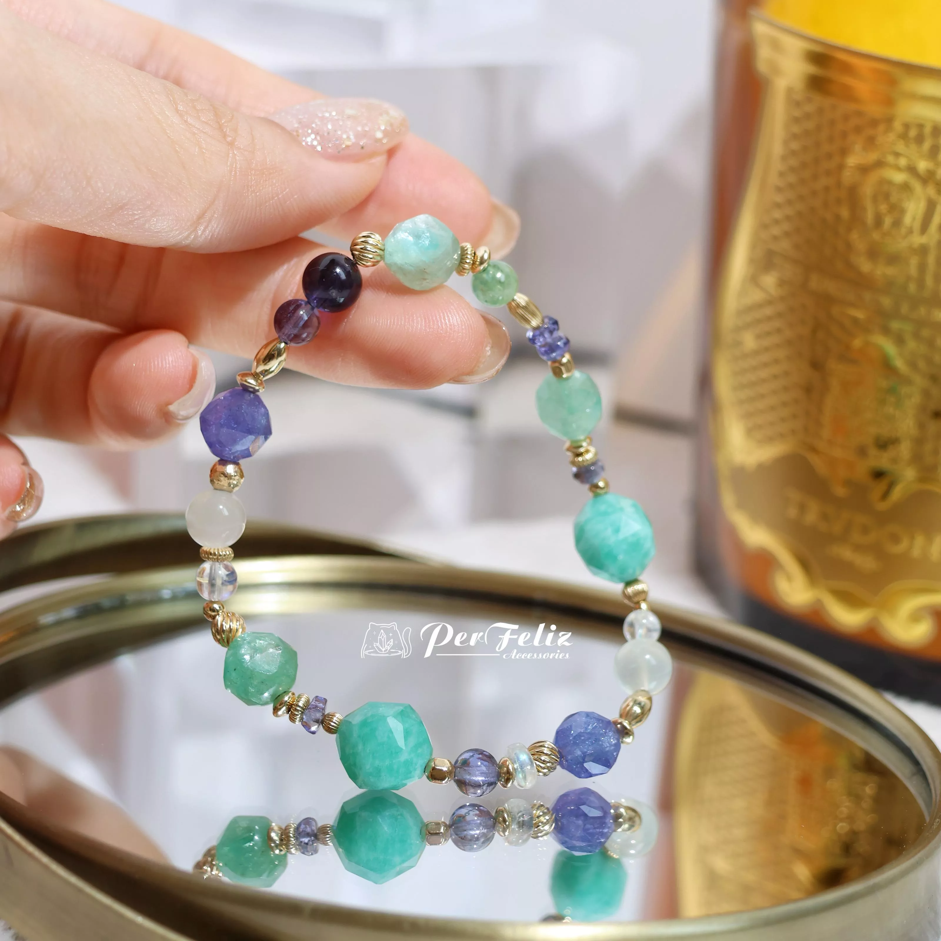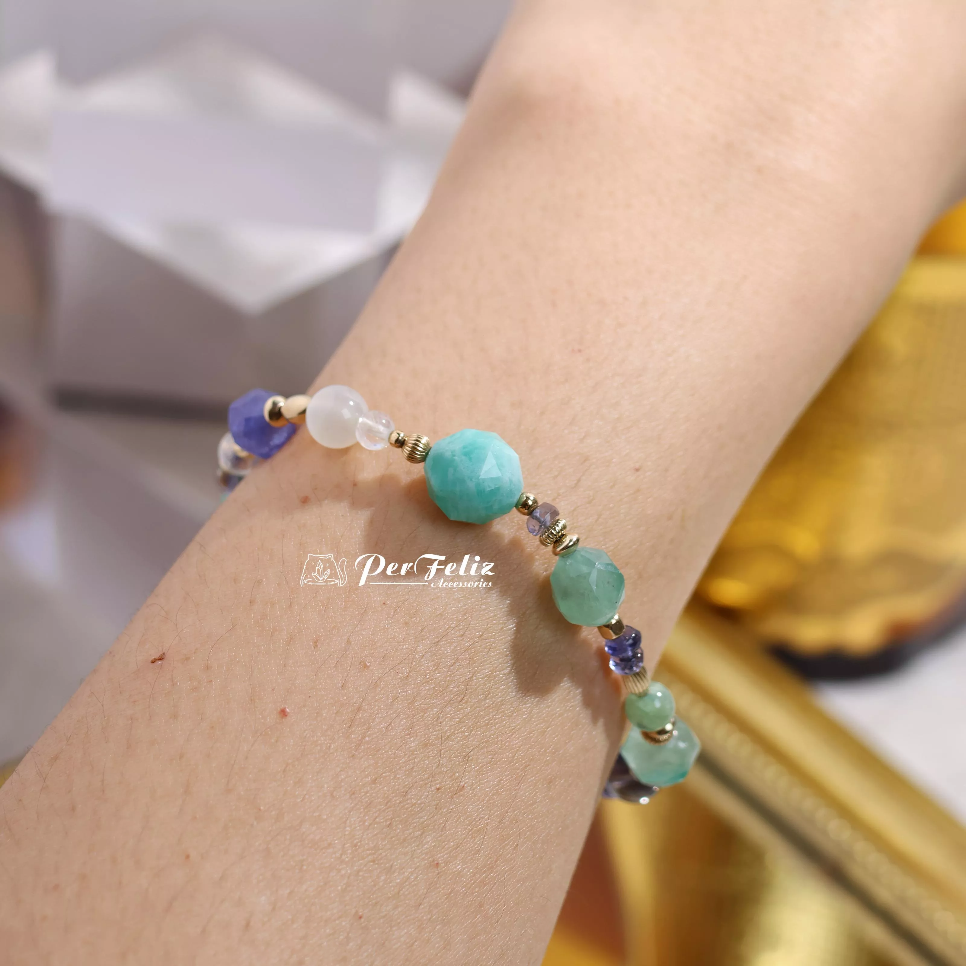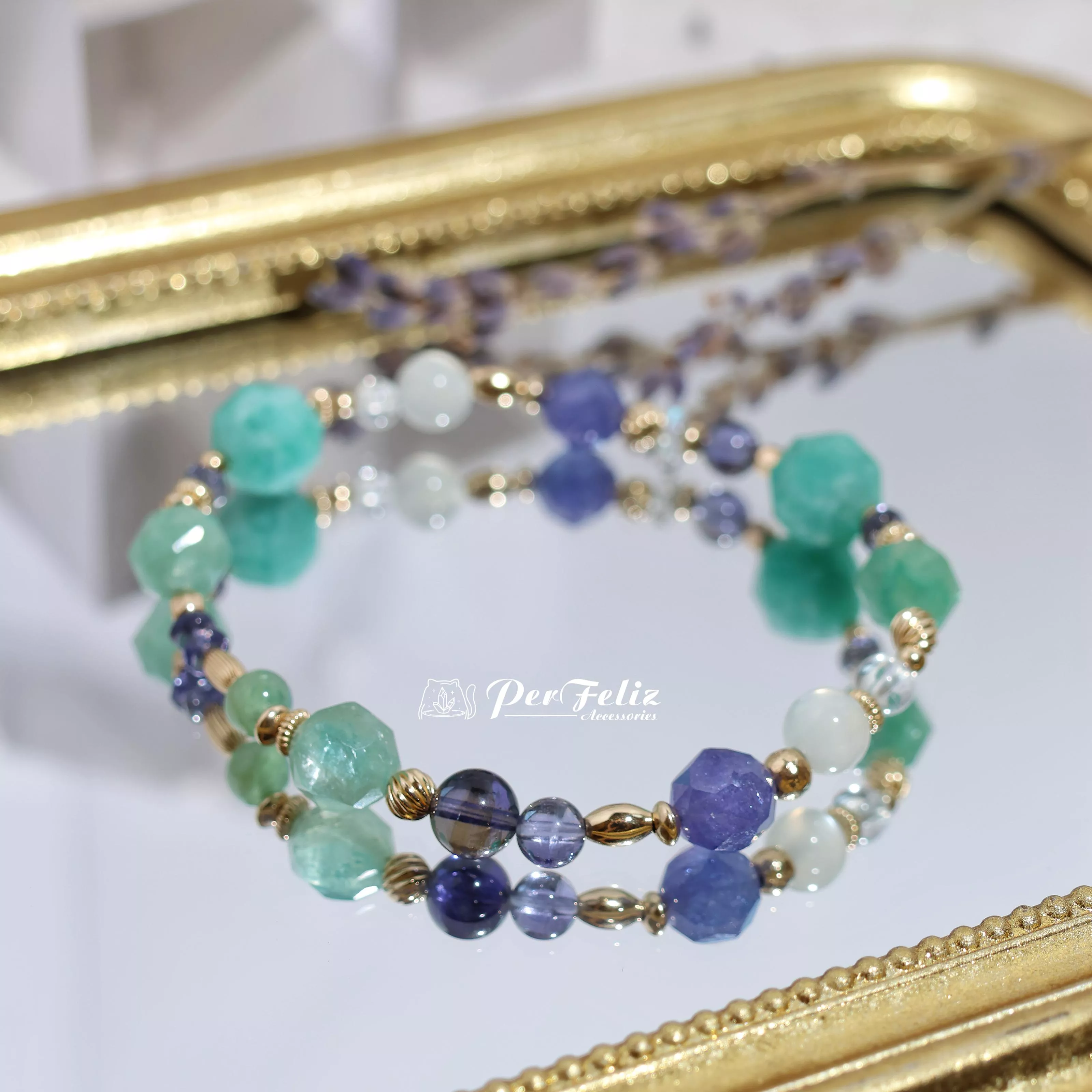 材料:坦桑鑽切、天河石鑽切、祖母晶鑽切、白月光、藍月光、堇青、藍綠晶