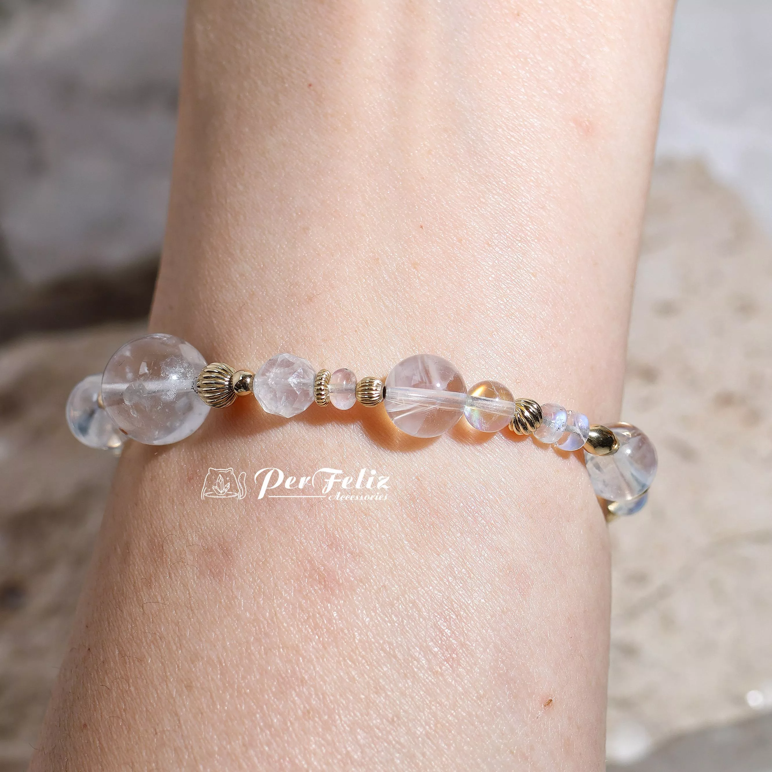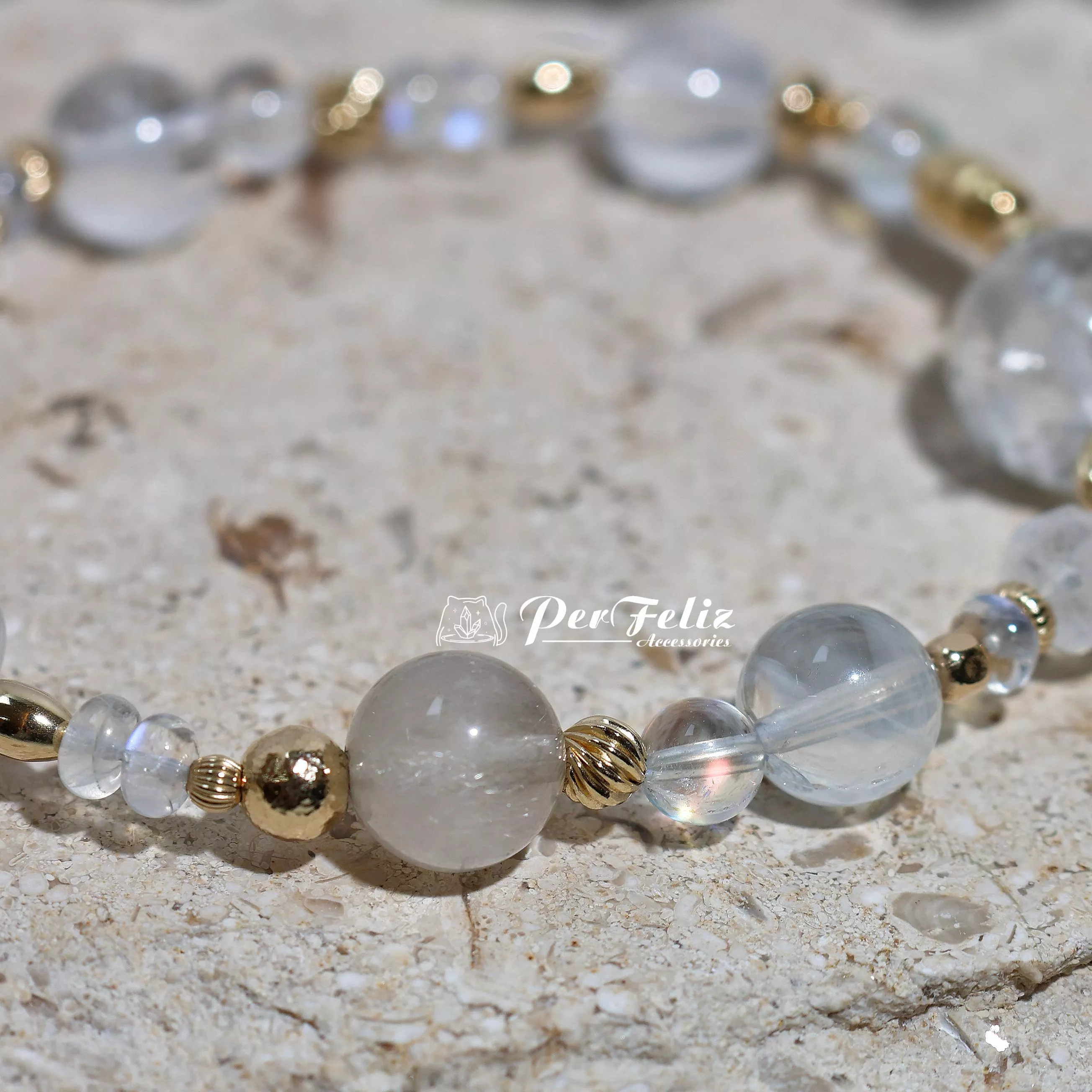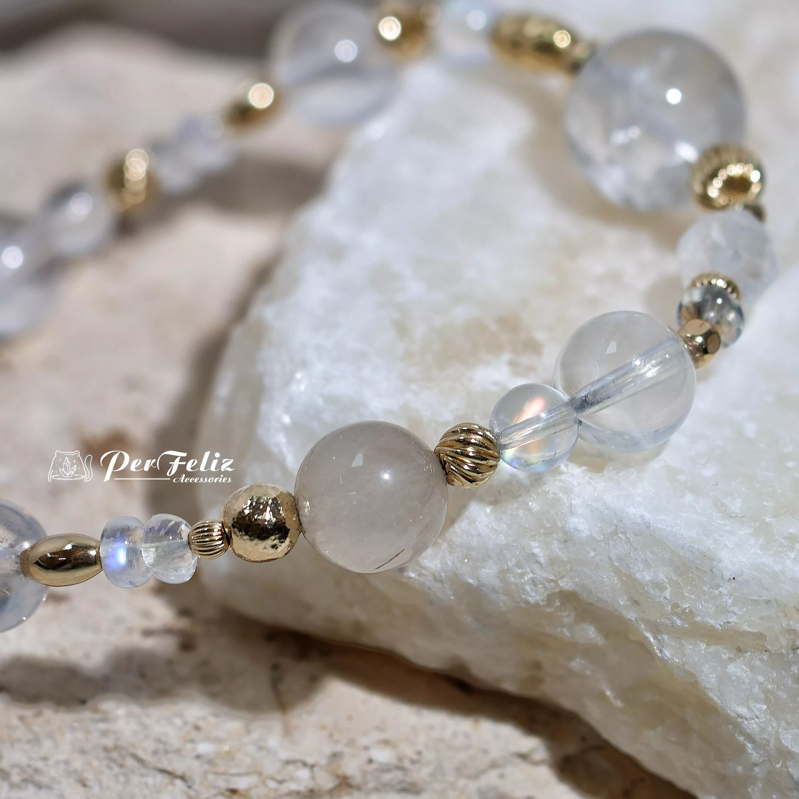 材料:兔毛糰、白兔毛、高品馬島月光、藍月光鑽切/盤珠、藍針水晶