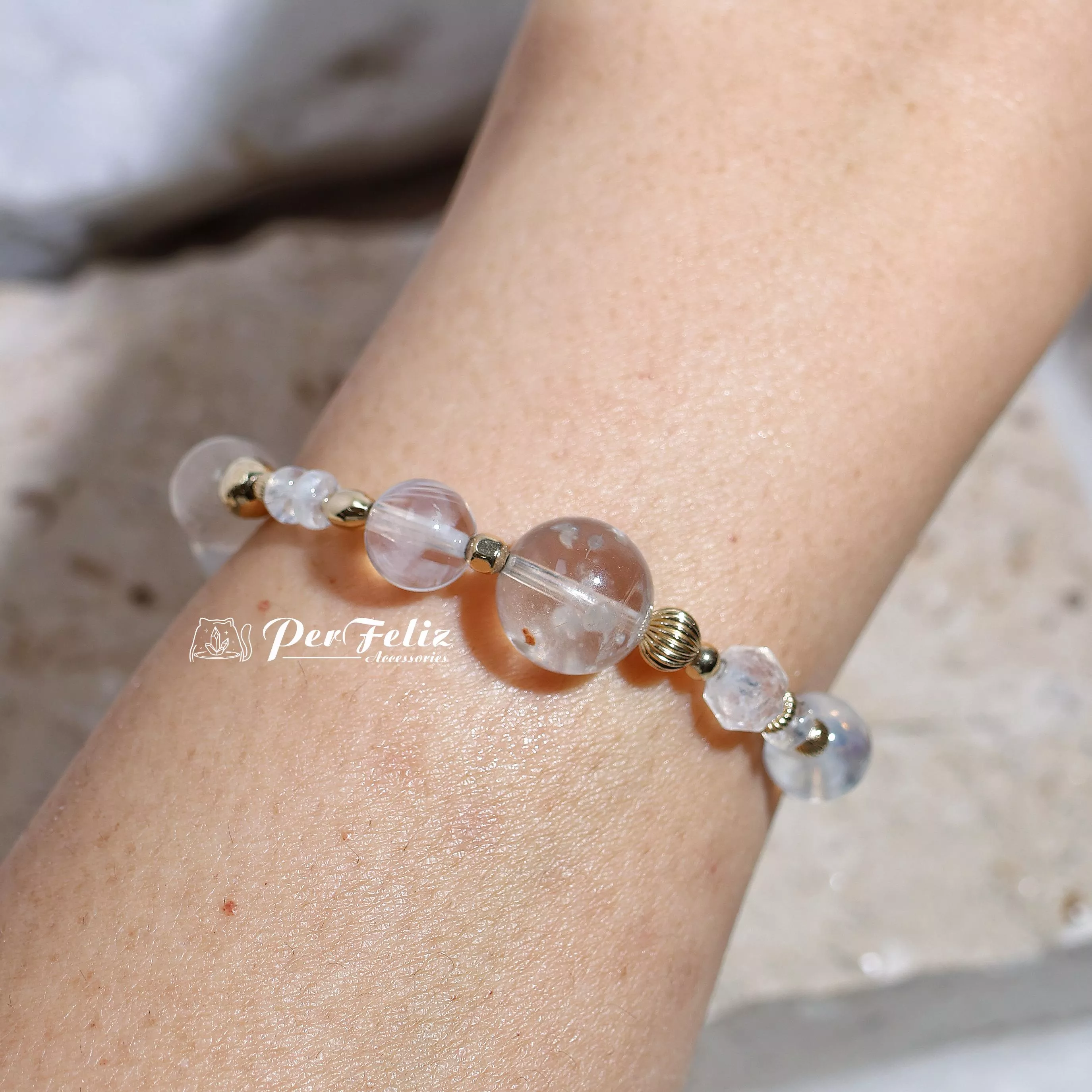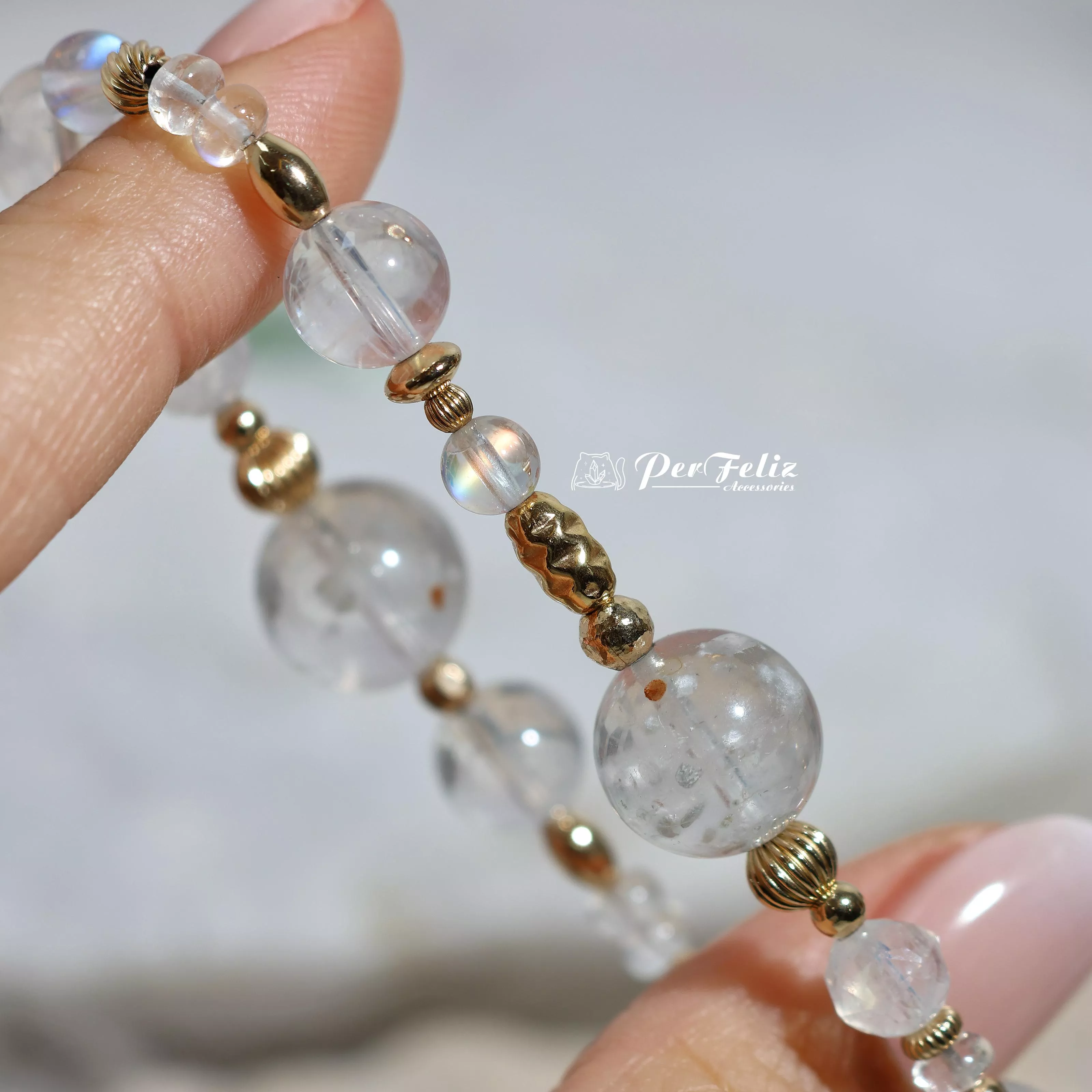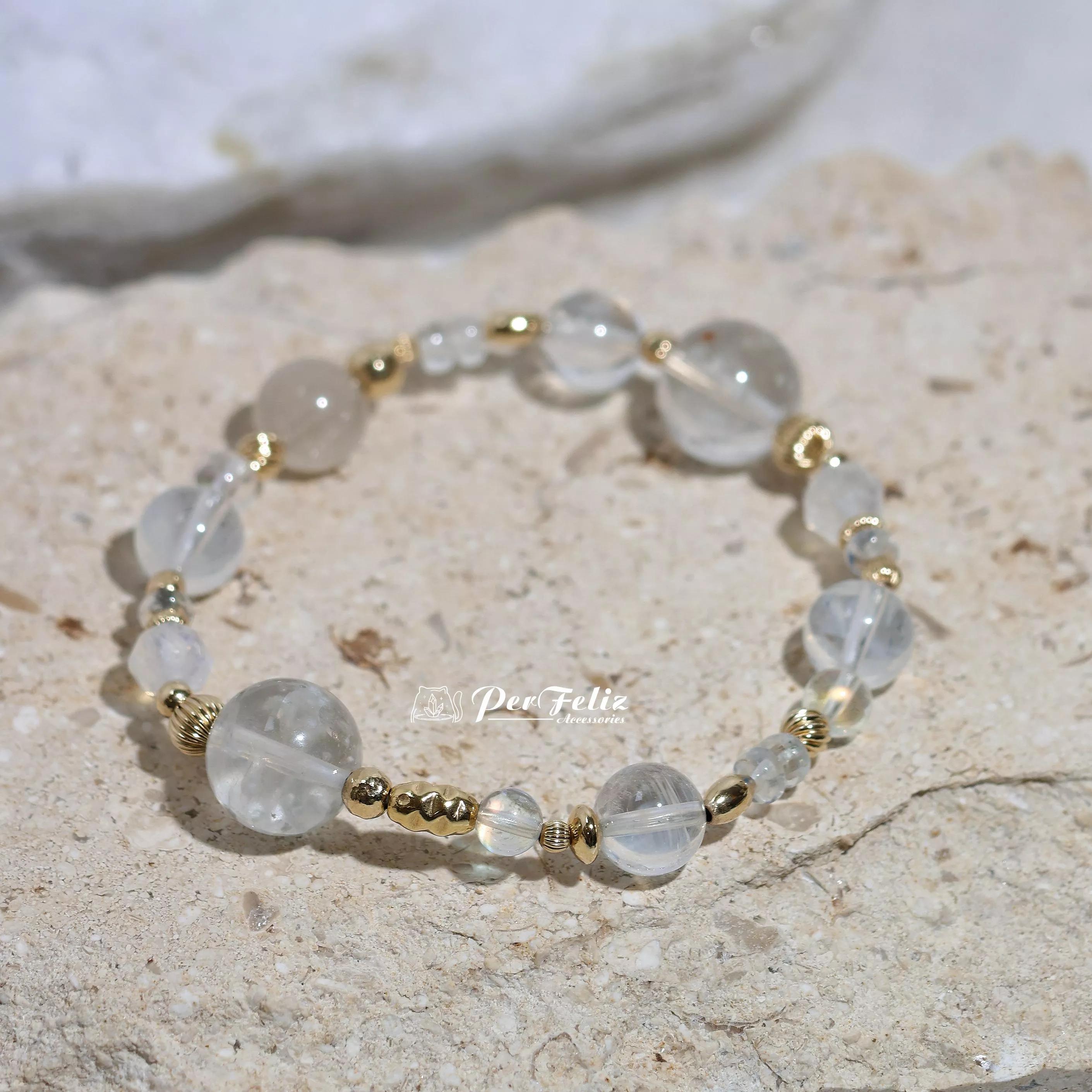 材料:兔毛糰、白兔毛、高品馬島月光、藍月光鑽切/盤珠、藍針水晶